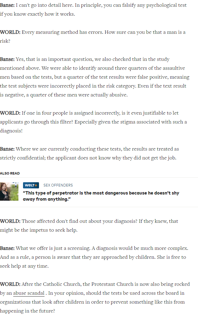 WELT Newspaper asks him for the Alternative? if its o.k to put Children at Risk to become target of possible offenders?